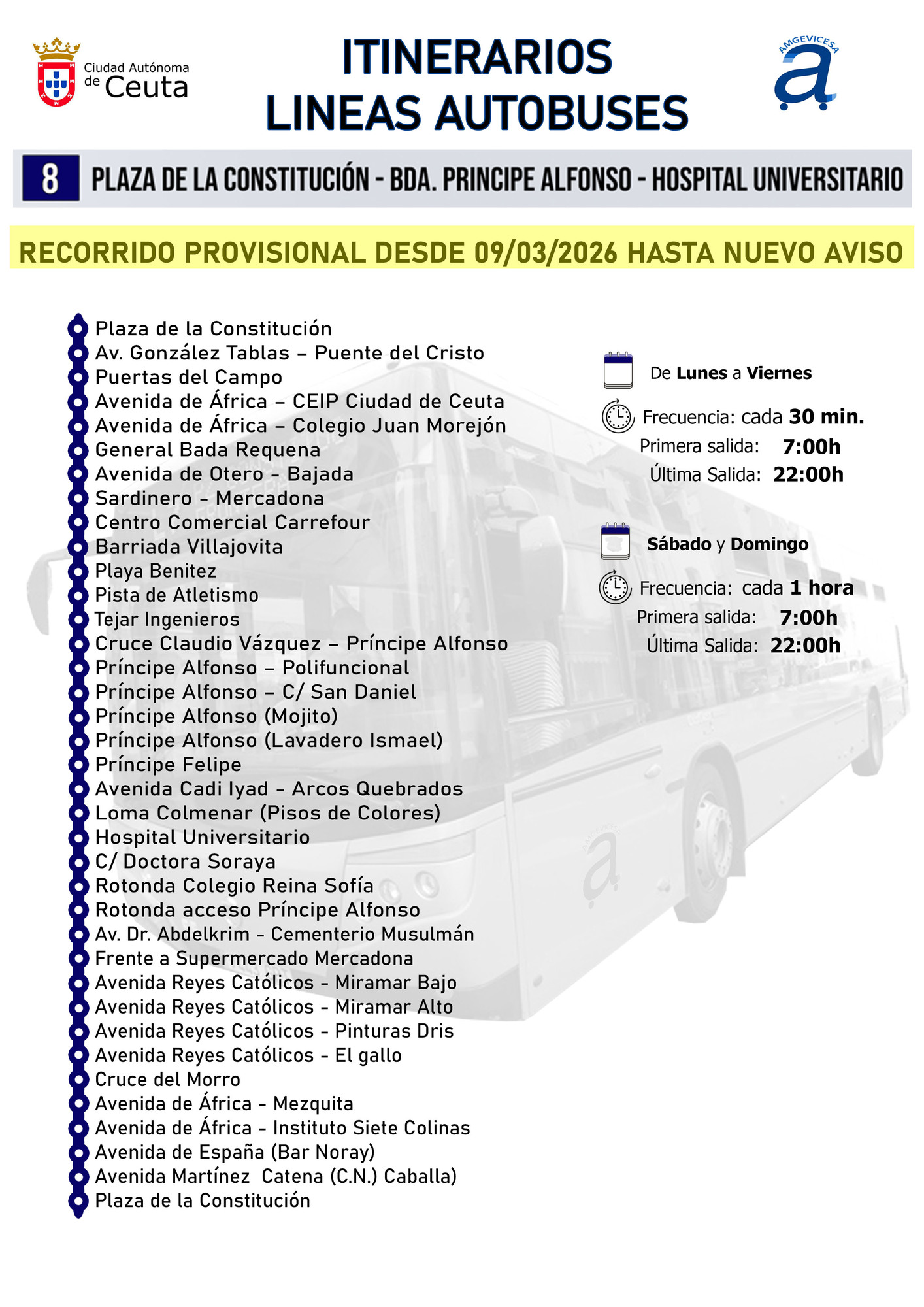 « Volver Línea 8 Línea afectada por un corte de tráfico en la zona, en vigor hasta nuevo aviso: Recorrido y horarios