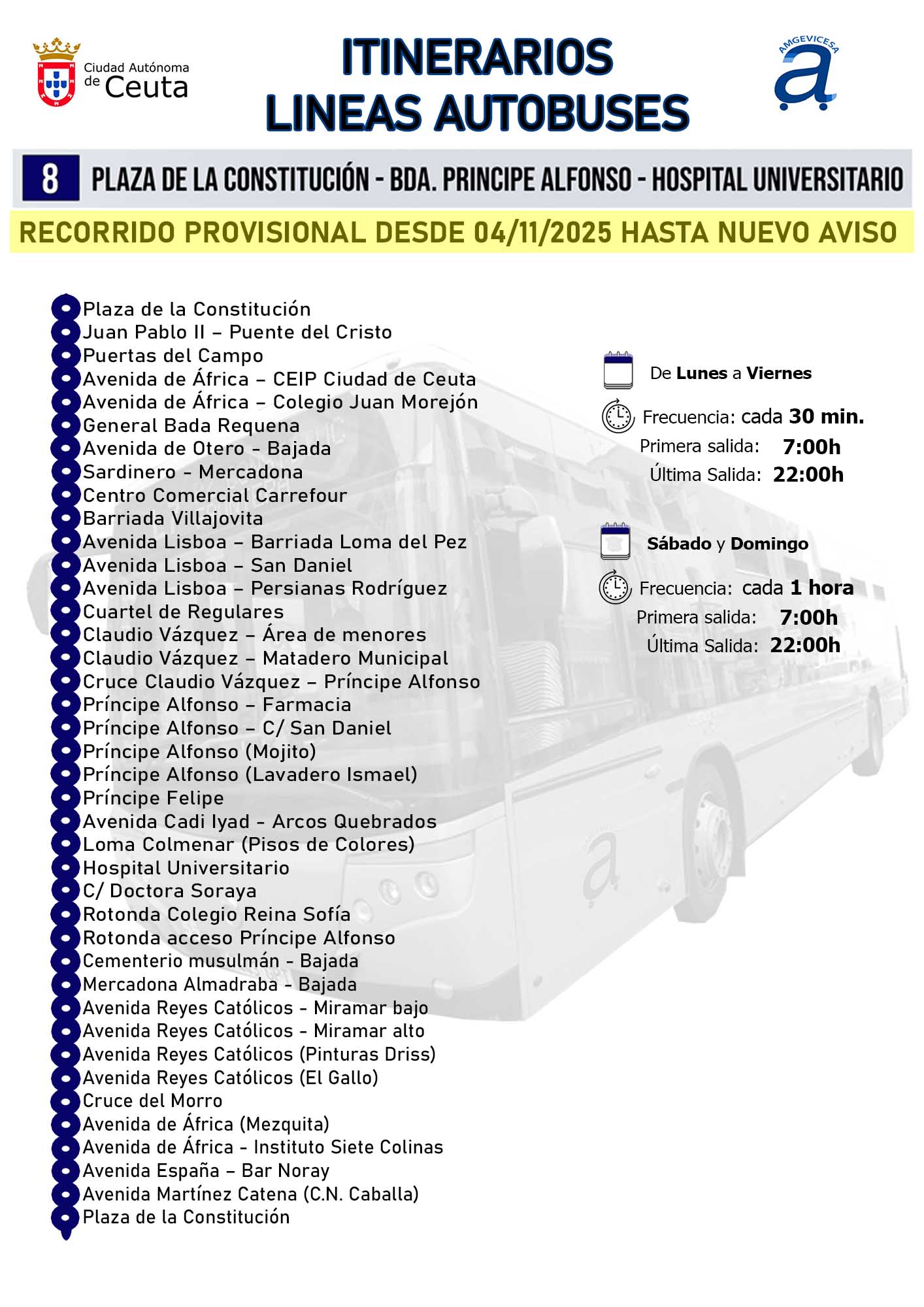 « Volver Línea 8 Línea afectada por un corte de tráfico en la zona, en vigor hasta nuevo aviso: Recorrido y horarios