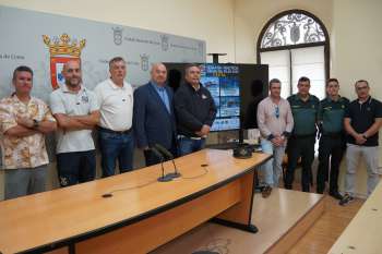 El consejero de Comercio, Turismo, Empleo y Deporte, Nicola Cecchi, el coronel jefe de la Comandancia de la Guardia Civil en Ceuta, José María Jiménez, y el presidente del Real Club Náutico CAS, Julio Sillero, han presentado hoy una nueva edición de la Semana Náutica Virgen del Pilar, que se celebrará entre el 2 y el 4 de octubre con un completo programa de actividades.