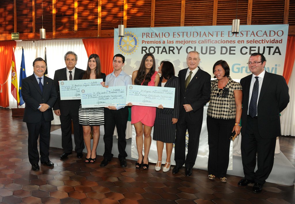 El presidente de la Ciudad, Juan Vivas, ha asistido hoy en el Hotel Parador La Muralla a la entrega del IV Premio Estudiante Destacado que otorga el Rotary Club de Ceuta a los estudiantes con mejoras notas en Selectividad. El primer premio ha ido a parar al alumno del Colegio San Agustín Alejandro Jiménez, mientras que el segundo y el tercero han recaído en Beatriz Mª Luque y Virginia Palomares, alumnos de los institutos Luis de Camoens y Siete Colinas. La Ciudad mejora las becas para ESO, aprueba el gasto para la limpieza de colegios y dedica 40.000 euros a programas de inserción educativa