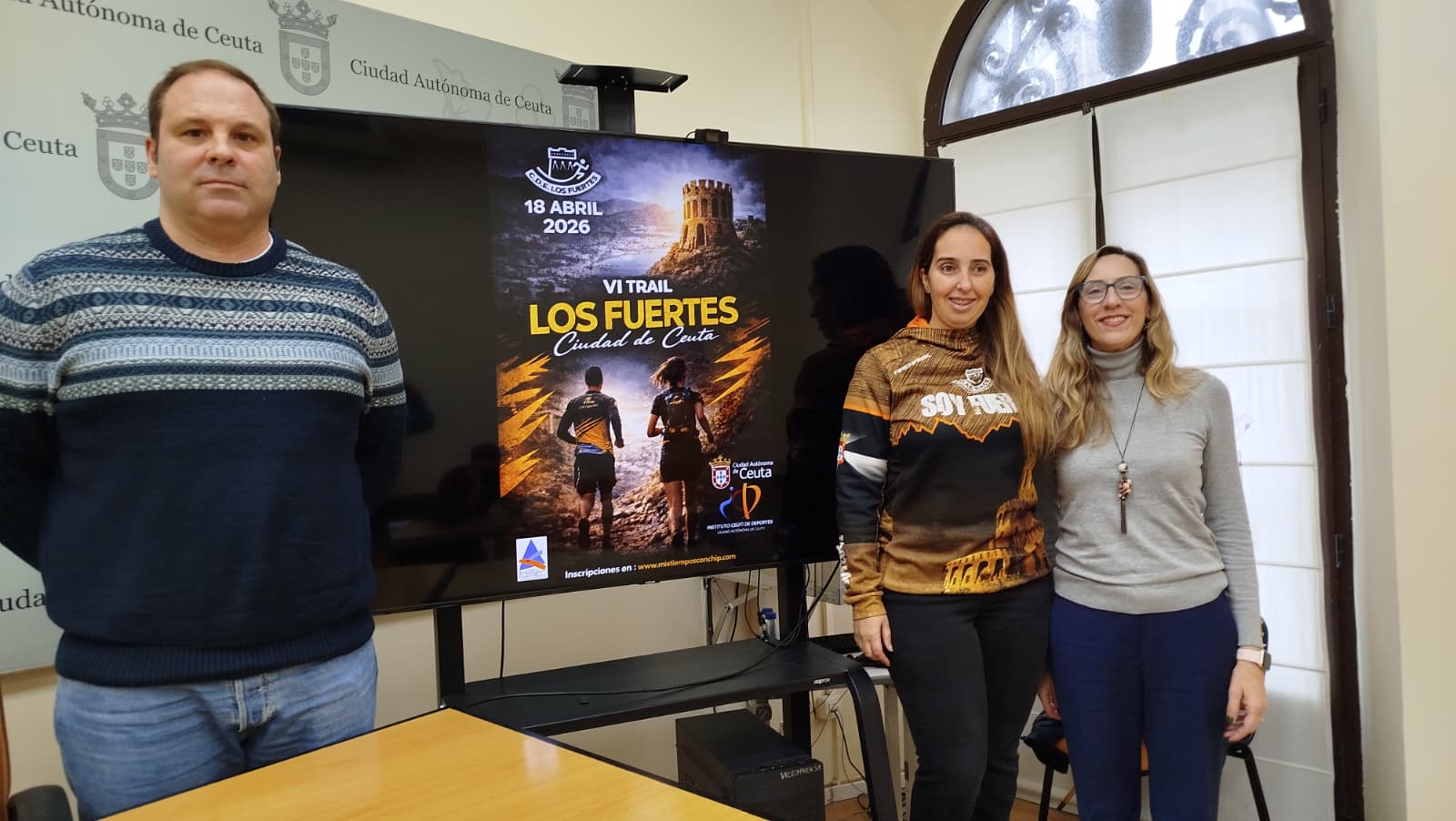 El director general de Deportes, Sergio Aguilera, acompañado de Mirfat Ahmed, presidenta del club Los Fuertes, ha presentado hoy la sexta edición del Trail Los Fuertes, organizada por el Club Deportivo Los Fuertes en colaboración con el Instituto Ceutí de Deportes (ICD).