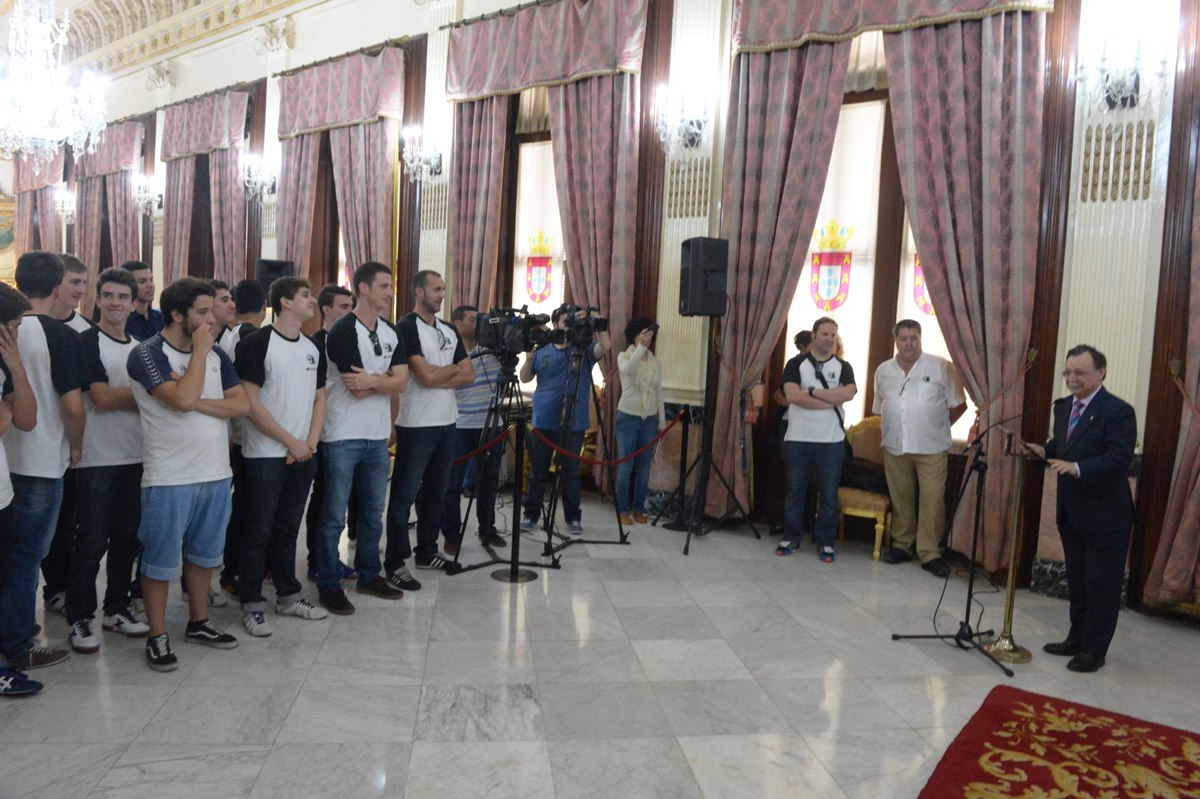 El presidente de la Ciudad, Juan Vivas, dio la bienvenida en el Salón del Trono del Palacio Autonómico a los participantes en el XXI Campeonato de España de Dupletas femenino y juvenil de Petanca, que se celebró durante el fin de semana en el Parque Urbano Juan Carlos, donde se montaron 32 pistas de 15 metros de largo por 4 de ancho.